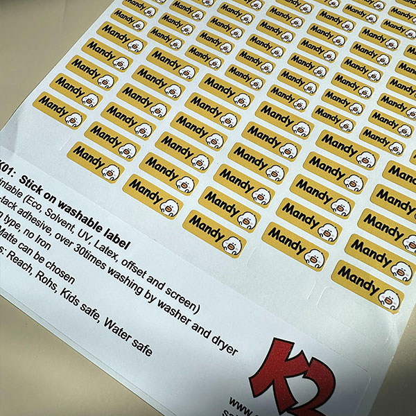 Zu den von K2 bereitgestellten Merkmalen druckbarer Namens-Tag-Aufkleber-Rohstoffe gehören hochwertiger Vinylmaterial, superhocher Klebstoff, langlebiger, waschbarer, wasserdichtes, fade-resistenter, anpassbarer Größe und Form. Diese Funktionen stellen sicher, dass Kunden ein Produkt erhalten, das sowohl qualitativ hochwertig als auch erschwinglich ist und gleichzeitig ihre spezifischen Bedürfnisse und Vorlieben erfüllen kann. Diese Funktionen können einem Produkt einen Mehrwert bieten und es für Kunden mit spezifischen Anforderungen oder Prioritäten attraktiver machen.